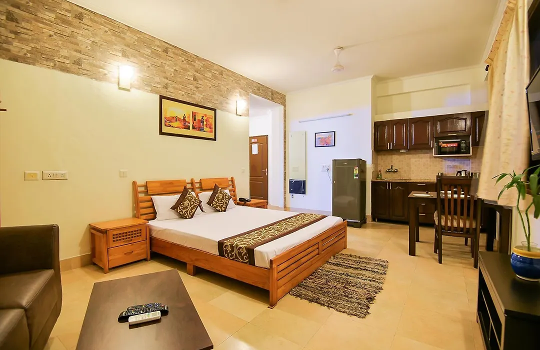 El hotel Studio Serviced Apartments Near Fortis Hospital ofrece habitaciones con una zona de comedor y un balcón, una plancha y tabla de planchar, climatizador y TV de pantalla plana con canales vía satélite. Todas las habitaciones de este lugar incluyen un hervidor eléctrico, nevera y menaje de cocina, así como un bidé, un inodoro separado y ducha.